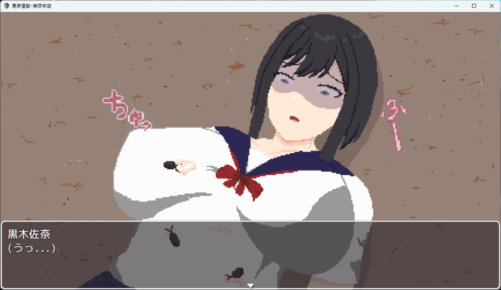 筆者のプレイ初っ端がこちら。謎の虫に服を食い破られ、そのまま虫に食べられるというニッチなシーンスタートに震えましたね。こういう性癖に正直な作品は、製作者様の意図が感じられていいですね。
