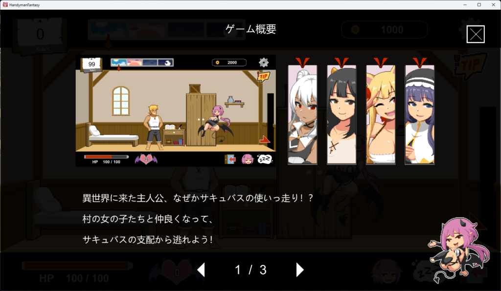 サキュバスの仕業で異世界転生した主人公で、バイトして、スキルを上げて、女の子とエッチなことをして、異世界から脱出しよう! というのが本作の大まかな流れになっています。