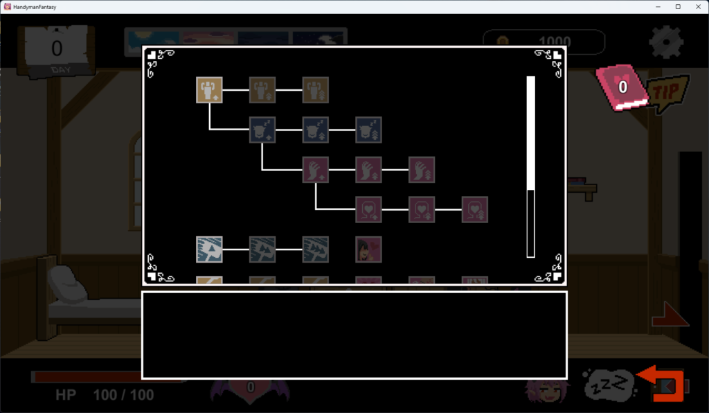 ハクスラのようなスキルツリーシステムで、スキルを習得! 稼げる額や、ヒロインの淫乱度上昇効果など、色々なスキルがあります!
