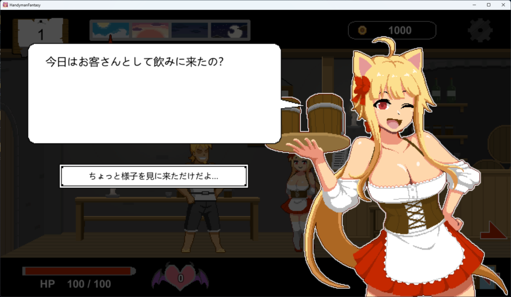 金髪好きの筆者一推しのヒロイン、ケイトちゃん。酒豪な酒場の看板娘で、陽キャな元気っ娘です!