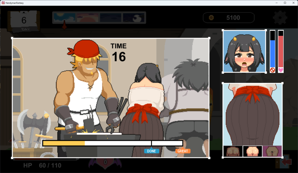 ちょくちょくヒロインにセクハラをしながら、バイトのミニゲームをこなし、お金を稼いで、