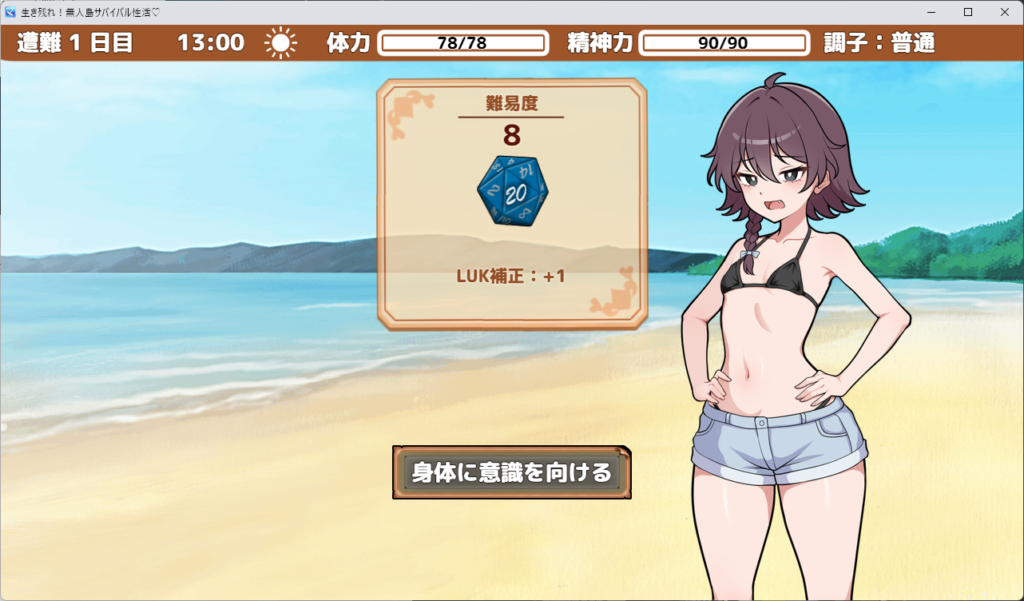 ゲームパートでは、20面ダイスを模した判定が行われます。主人公にステータスの成長要素があり、後半になるにつれて、判定が段々と緩和されていきます。