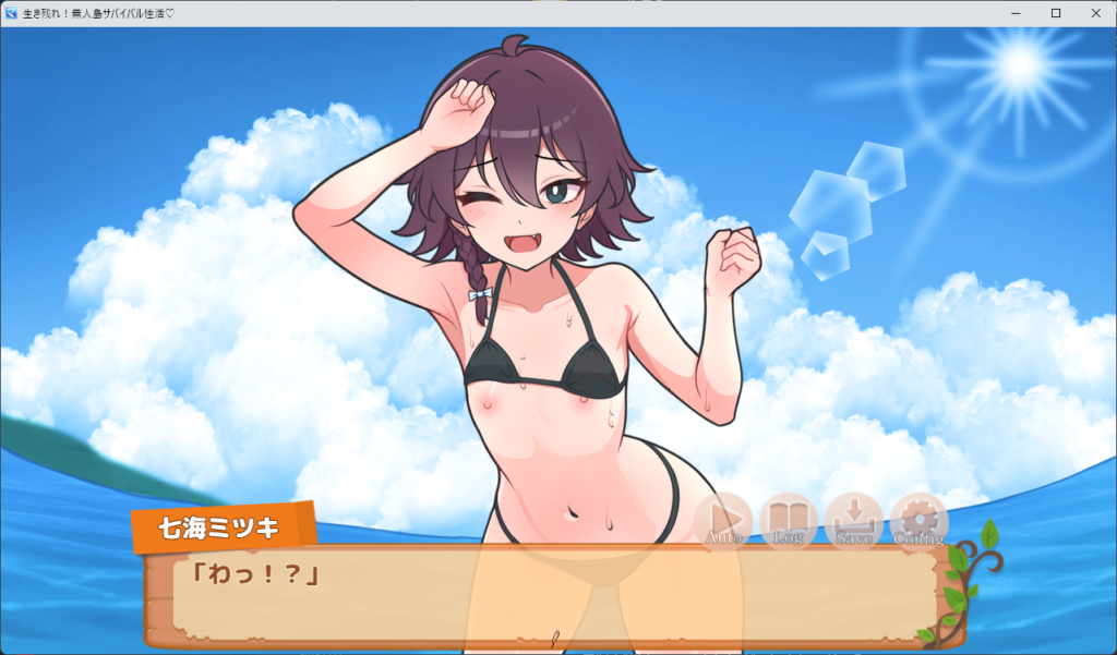 タイトル画面では、スレンダーでも肉付きのあるえっちなぼでーの本作ヒロイン、七海ミツキちゃんがお出迎え。